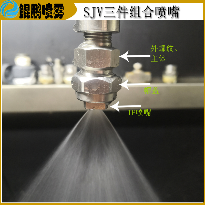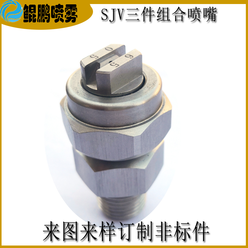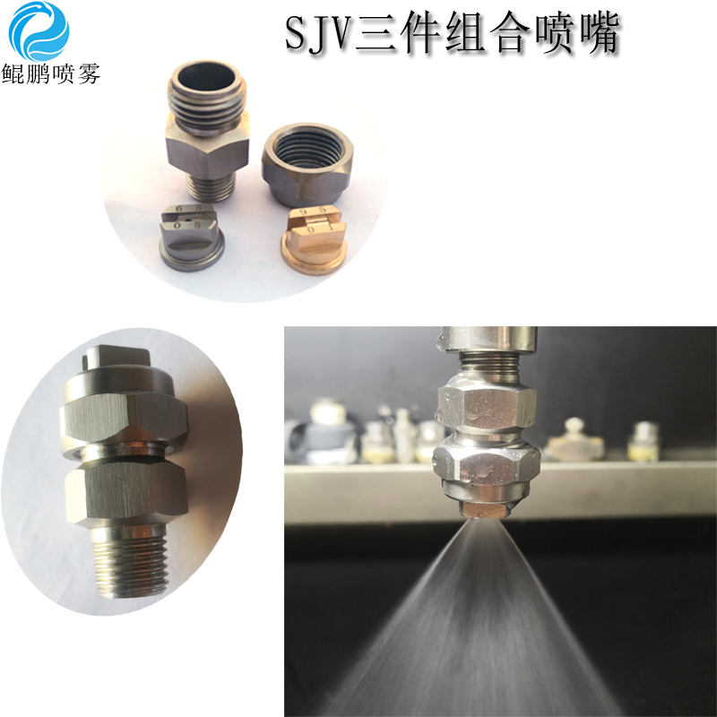 SJV三件組合式噴嘴 SJV扇形噴射噴頭能提供高沖擊力的注流或扇形噴霧,噴射角度在0-100之間,該噴頭產(chǎn)生的噴霧分均勻,液滴 由細(xì)小到中等,當(dāng)需要幾個(gè)噴嘴重疊噴射時(shí),特殊的設(shè)計(jì)邊使得噴