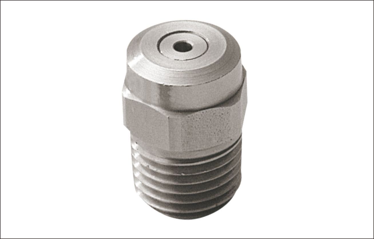 標(biāo)準(zhǔn)角噴嘴的特點(diǎn)是能產(chǎn)生實(shí)心錐形噴霧形狀,噴射區(qū)域呈圓形,噴射角為46-106。 噴嘴能在大范圍的流率和壓力下產(chǎn)生分布均勻,液滴大小為中等到偏大的噴霧,這種均勻的噴霧分布來